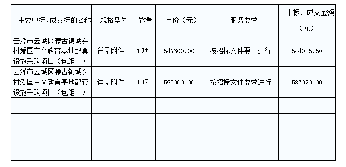 云浮市云城區(qū)腰古鎮(zhèn)城頭村愛國主義教育基地配套設(shè)施采購項(xiàng)目中標(biāo)公告